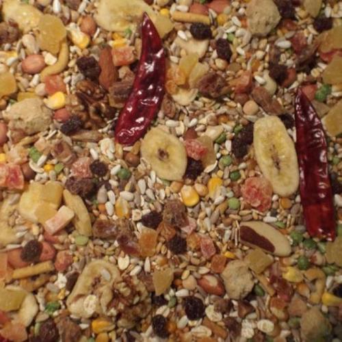 It is nice to buy this seed mixture in addition to the parakeet mixture (for my Indian ring-necked parakeet) since it has more of a variety of seeds and nuts and fruit.